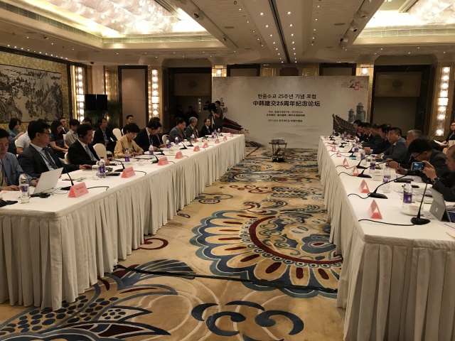 此次論壇是中韓建交25周年的系列活動之一,主辦雙方旨在通過智庫交流進(jìn)一步推進(jìn)中韓公共外交,為兩國關(guān)系的恢復(fù)和平穩(wěn)健康發(fā)展貢獻(xiàn)積極力量。致辭嘉賓還包括韓國前駐華大使、未來研究院院長辛正承,盤古智庫理事長易鵬,盤古智庫學(xué)術(shù)委員會名譽(yù)主任、中共中央對外聯(lián)絡(luò)部原副部長于洪君,韓國外交部公共外交大使樸銀夏等。韓中未來研究院執(zhí)行委員、前外交官丁相基,盤古智庫專家張璉瑰、朱鋒、高揚(yáng)、王棟、岳立、安剛、梁亞濱等參加了主題發(fā)言和討論環(huán)節(jié),針對過去25年間中韓關(guān)系發(fā)展歷程、目前中韓關(guān)系的癥結(jié)以及未來中韓關(guān)系發(fā)展方向等問題給出了意見與建議。