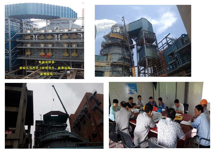 5、6號機組脫硫提效改造項目;包括新增低溫省煤器、原吸收塔增高、新建副漿液箱、新增濕式電除塵現(xiàn)場所必需的所有的建筑、安裝工作,以及新增設備的附屬系統(tǒng)安裝、設備基礎制作、與新設備沖突的舊設備、煙道等拆除、清理、恢復,設備安裝完畢后實驗檢驗、單體調試,配合試運直至168結束。
