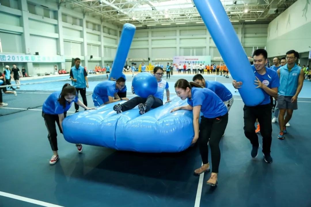 此次活動的項目經過了精心設置,將在職工中普遍開展的羽毛球、籃球項目設置為專業(yè)競技項目,此外,綜合考慮職工身體素質差異和群眾參與性,設置了輕量化、趣味性更強的團體競技項目七項:滾滾向前、旋轉飛碟、旱地龍舟、漢諾塔、動感顛球、超級障礙賽、拔河。